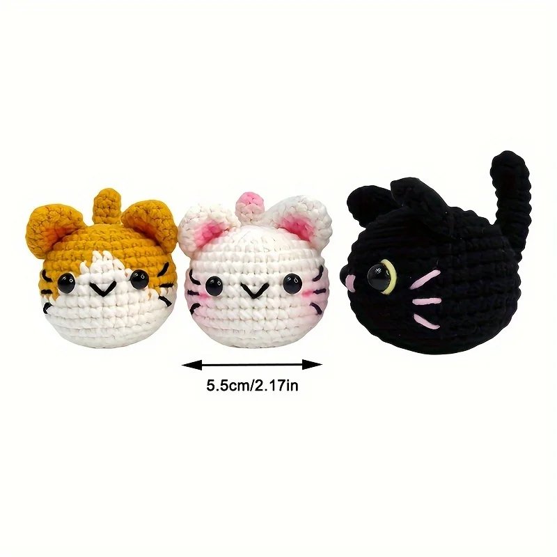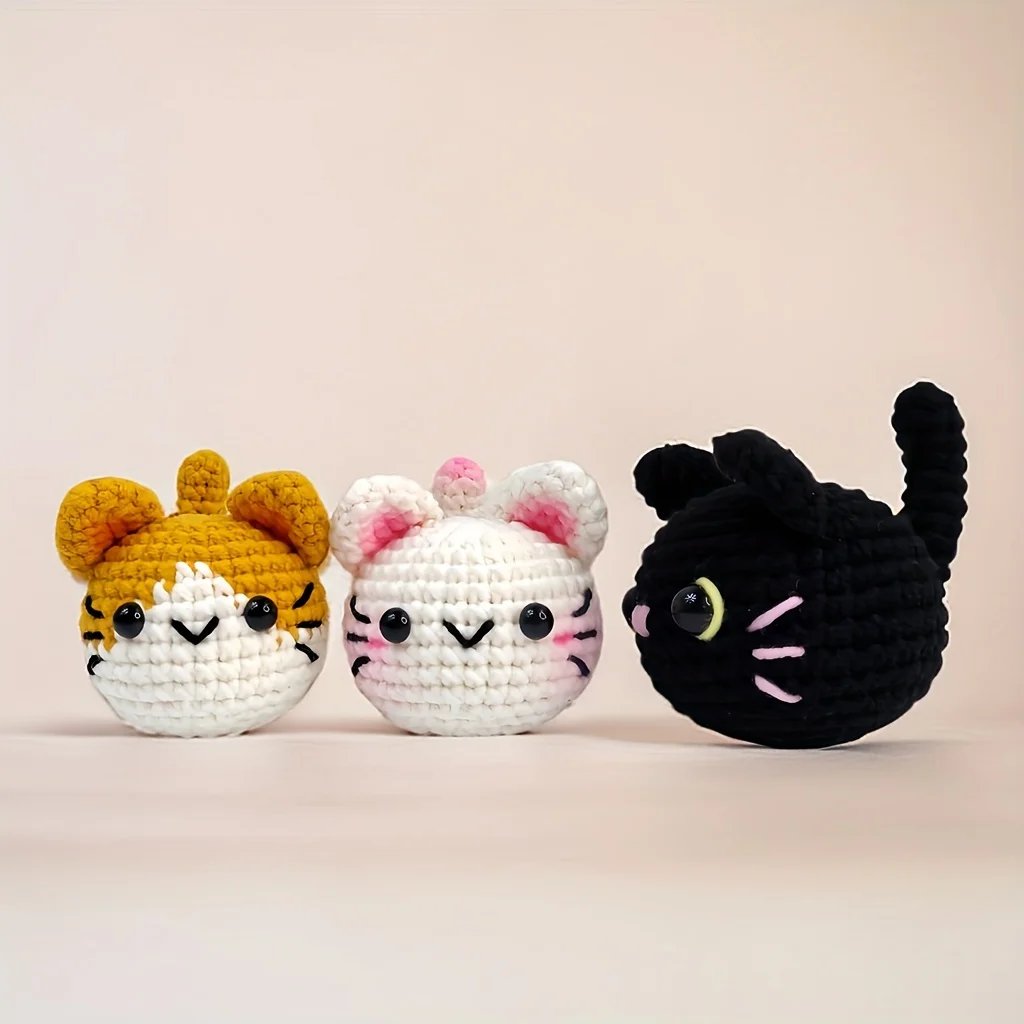 3pcs Cat Amigurumi, Crochet Kit for Beginner, Step-by-Step Video Tutorial Included – Craft Kit for Beginners – DIY Crochet Cats