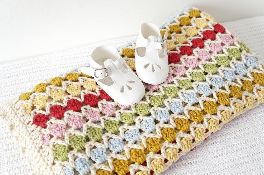 Easy to make with full instructions. Includes lots of photos to guide you through making this lovely bright blanket for your baby or as a wonderful, colourful gift. Simple instructions (in both UK and US terms) are included to make a larger/smaller blanket.