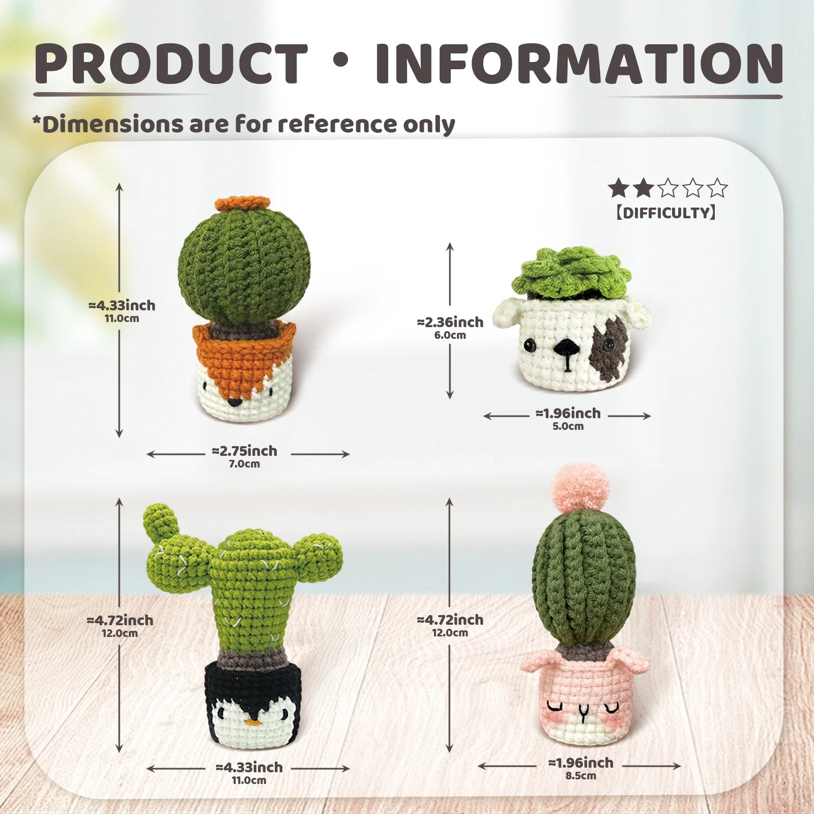 - Animal & Cactus Themed Patterns – Fun twist with adorable animal-cactus designs that bring personality and cuteness to your knitting arts and crafts project.