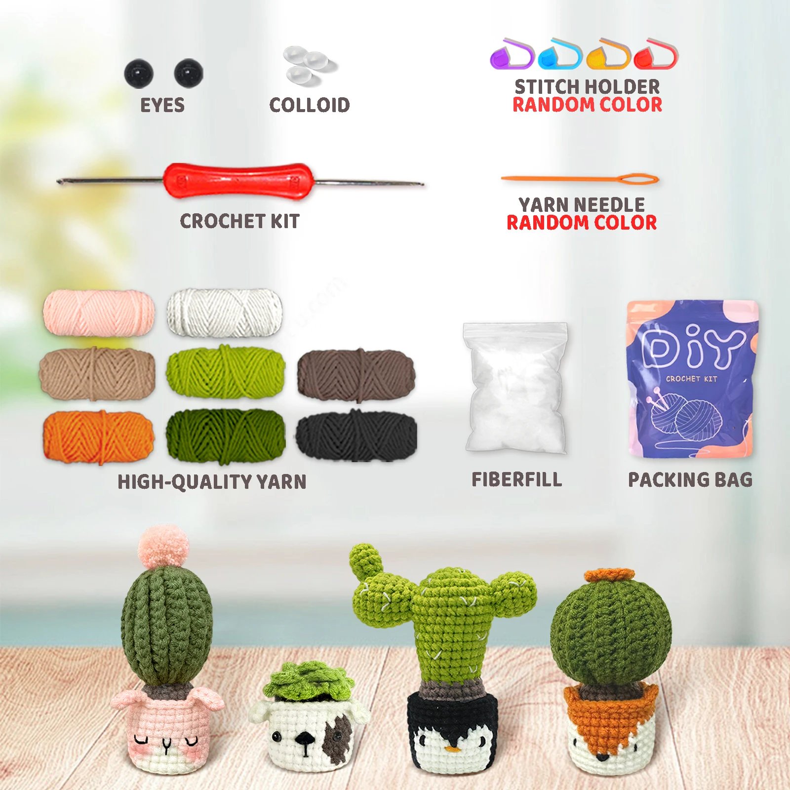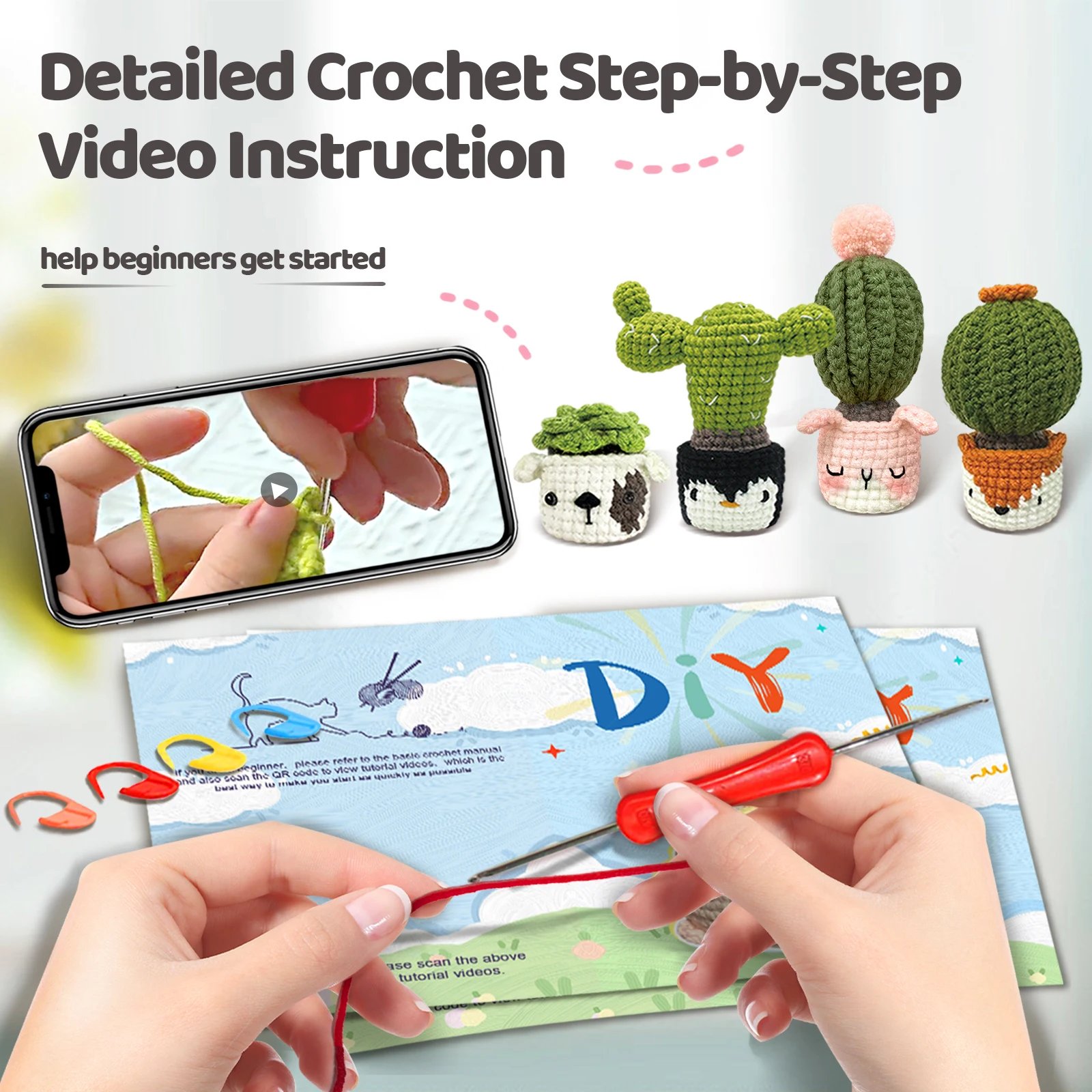 Craft a super cute animal-cactus hybrid plush with the DIY Crochet Kit for Beginners – an easy, fun starter set for your first amigurumi adventure!