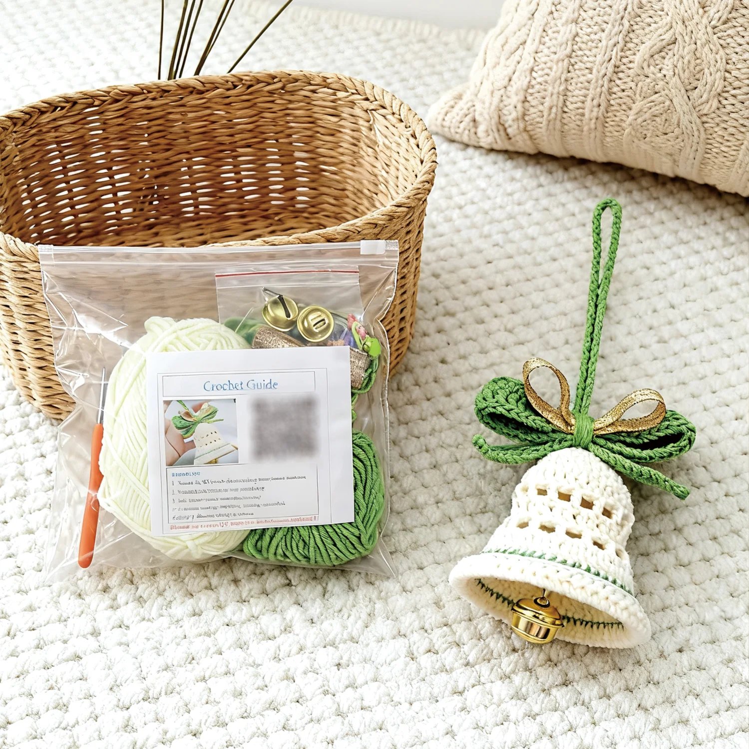 This all-in-one kit lets you crochet a charming wind chime pendant featuring classic Christmas vibes. Made with premium soft milk cotton yarn (gentle on hands, beautiful drape, and subtle sheen), your finished piece will add a delightful, melodic touch to porches, windows, Christmas trees, or as a thoughtful handmade gift.