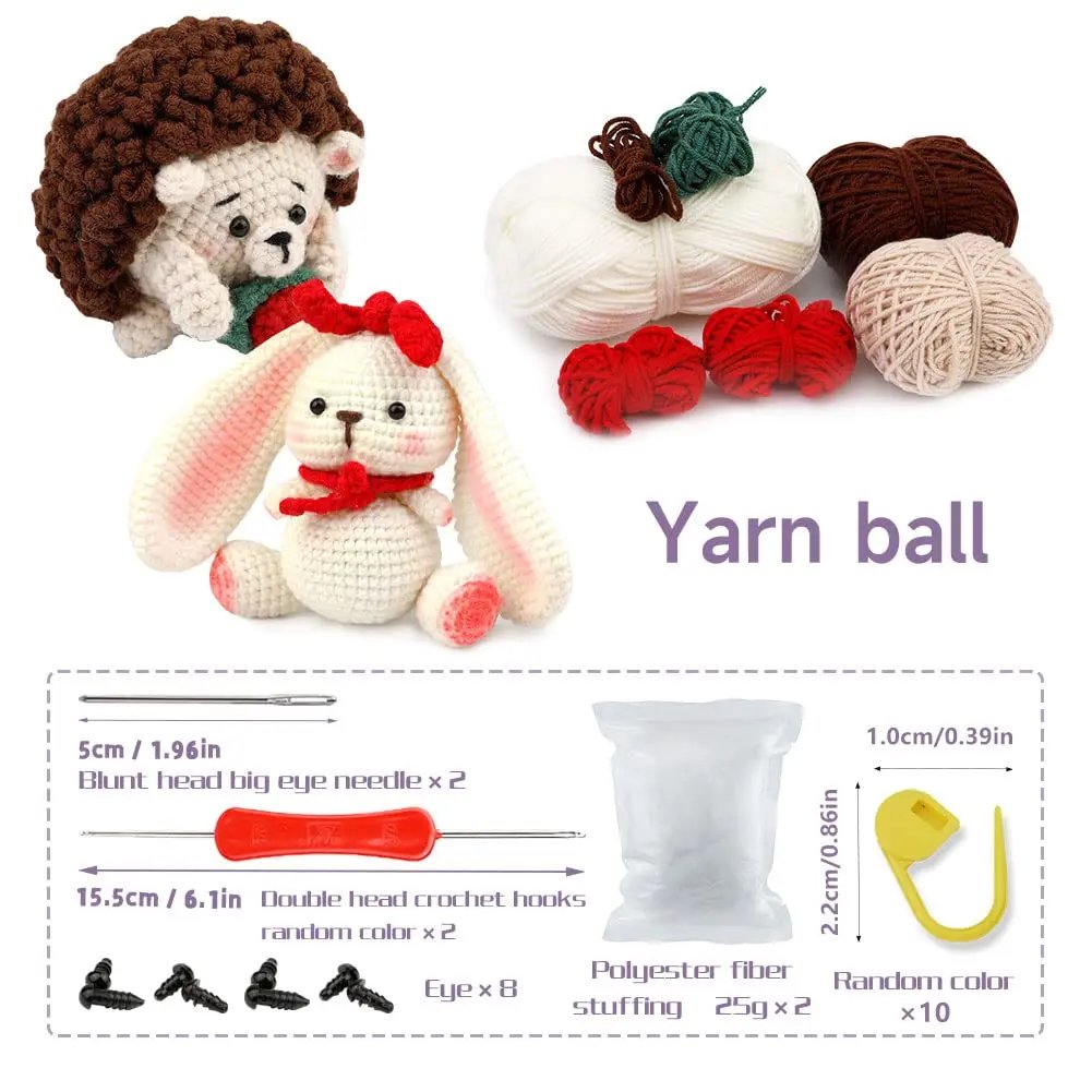 6、25 grams of high quality filling cotton make up a hedgehog knitting kit.
