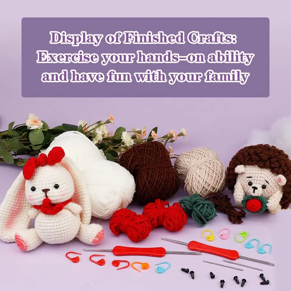 3、Cute Animal Shape: This complete crochet kit with five different animal shapes for your to choose, each one is cute and fun, the simple and cute shape of the little Hedgehog and Rabbit are perfect for finding peace and harmony while creating these adorable characters with premium yarn.