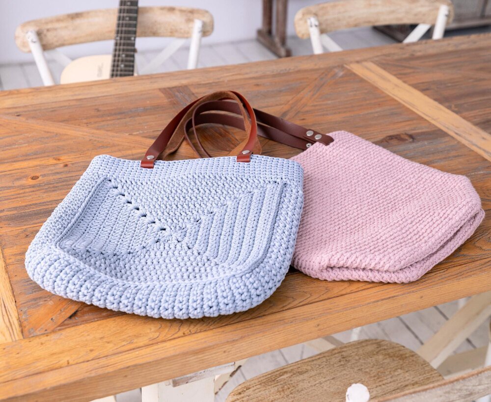 3-4 mm polyester cord 300-400 meters hook 5 mm scissors, stitch markers, yarn needle leather handles for the bag In this pattern I use 3 mm polyester cord and a 5 mm crochet hook. My bag has sizes: 14” (36 cm) wide, 15” (38 cm) high.