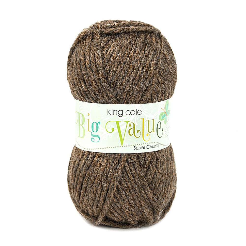 Super bulky knitting in a brilliant range of colors, King Cole Big Value Super Chunky yarn is available in a fabulous range of colors from pastels, to jewel brights and marled shades! Great value 3.5oz balls, perfect for any standard bulky knit pattern, Knits up on US 15 (10mm) needles, and crochets on a N (10.00mm) hook for a gorgeous bulky blanket!