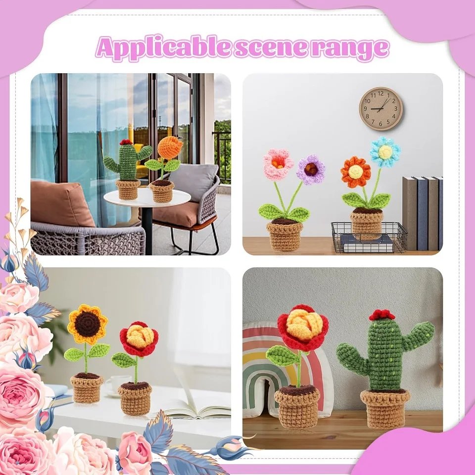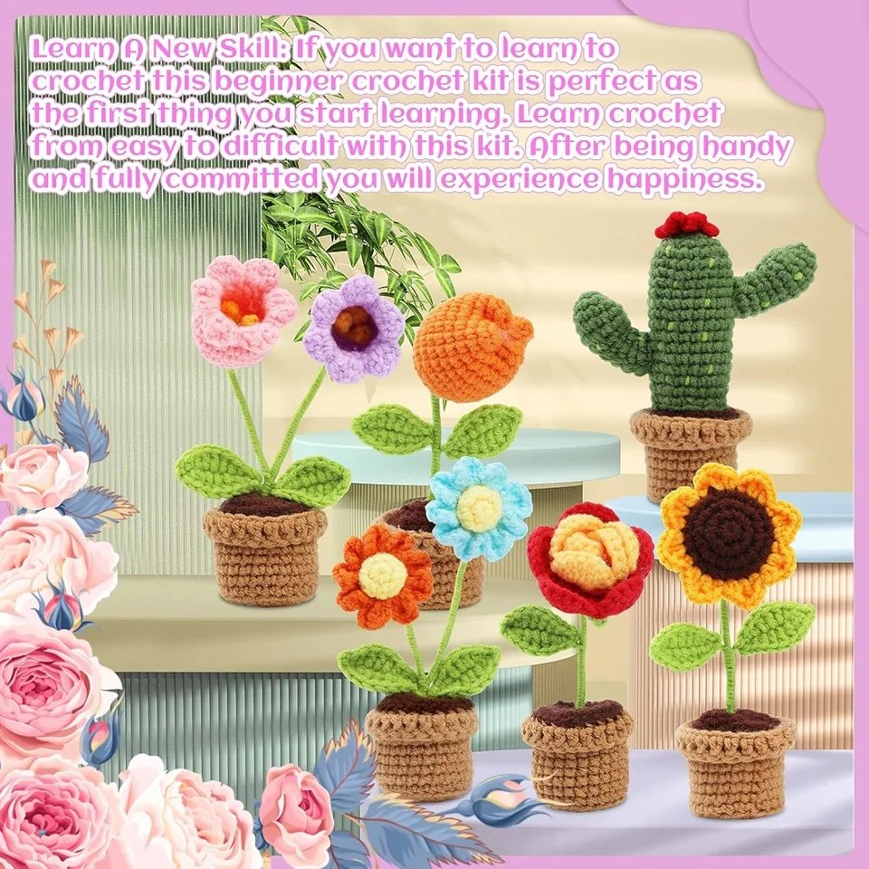 6Pcs Flower Crochet Knitting Kit With Crochet Needles Fiberfill And Instruction For Doll Making DIY Non-finished Craft
