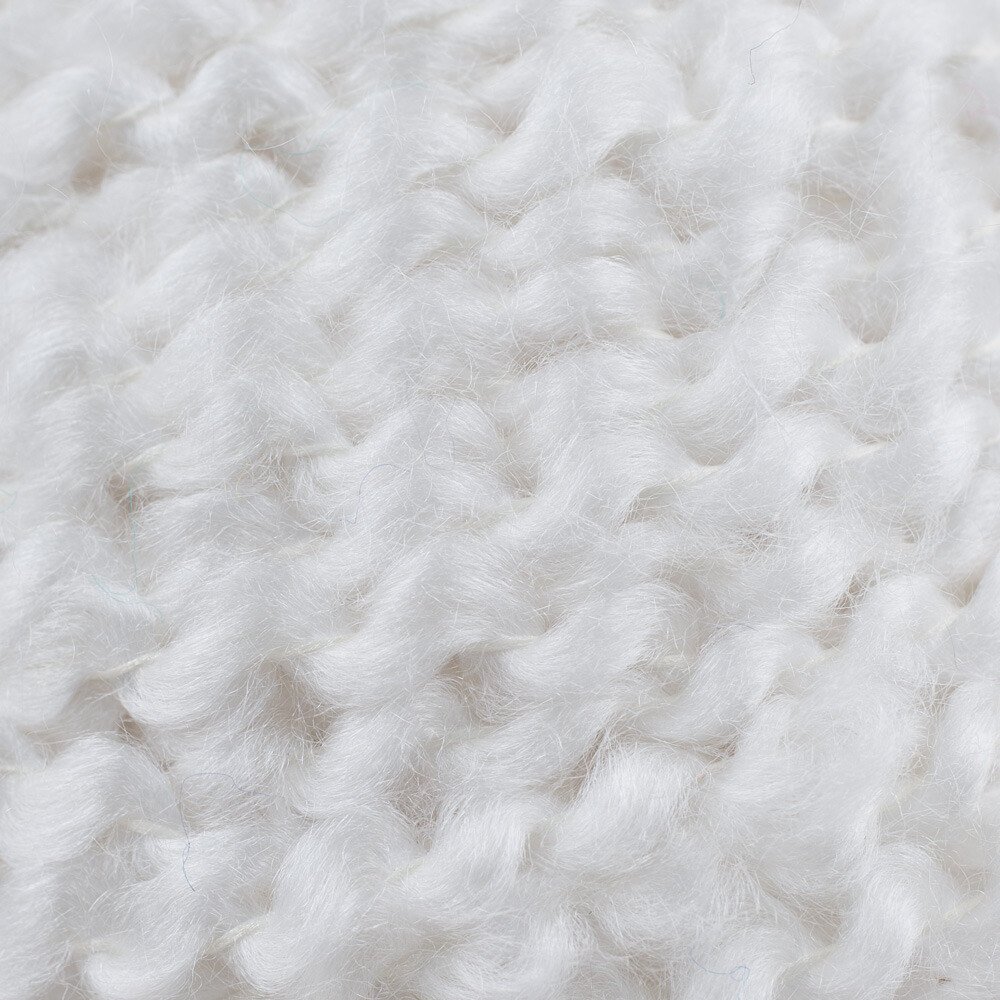 A perfectly reliable acrylic, polyster yarn with a textured ripple. Lion Brand Homespun is bulky weight, and knits and crochets surprisingly lightly. The ripple lifts the simplest stitch. The “painterly” shades also subtly self stripe. Knits up on US 10 (6mm) needles or a K (6.50mm) hook.