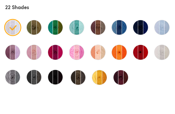 Because of the nature of recycled jersey T shirt fabric, the yarn may vary in width from ball to ball and sometimes with some variation within the ball. Before you start your project: due the nature of recycled yarn, the shades within each color batch vary, and each image shown illustrates the variation of shades you might receive for each color group (not three balls of yarn). If your yarn shades aren’t what you dreamt they would be, you can send it back to us following our quibble free returns policy.
