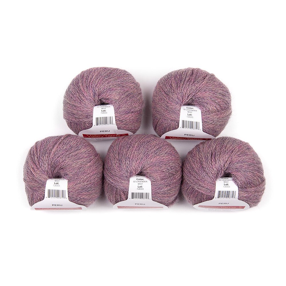 Valley Yarns Peru is a spectacular blend of baby alpaca, Merino wool, and a hint of nylon that works up beautifully into cowls, scarves, shawls, and sweaters. Peru has a chainette construction that creates a warm, lightweight fabric with a gorgeous drape. The slightly heathered shades add depth and interest to your finished projects.Â