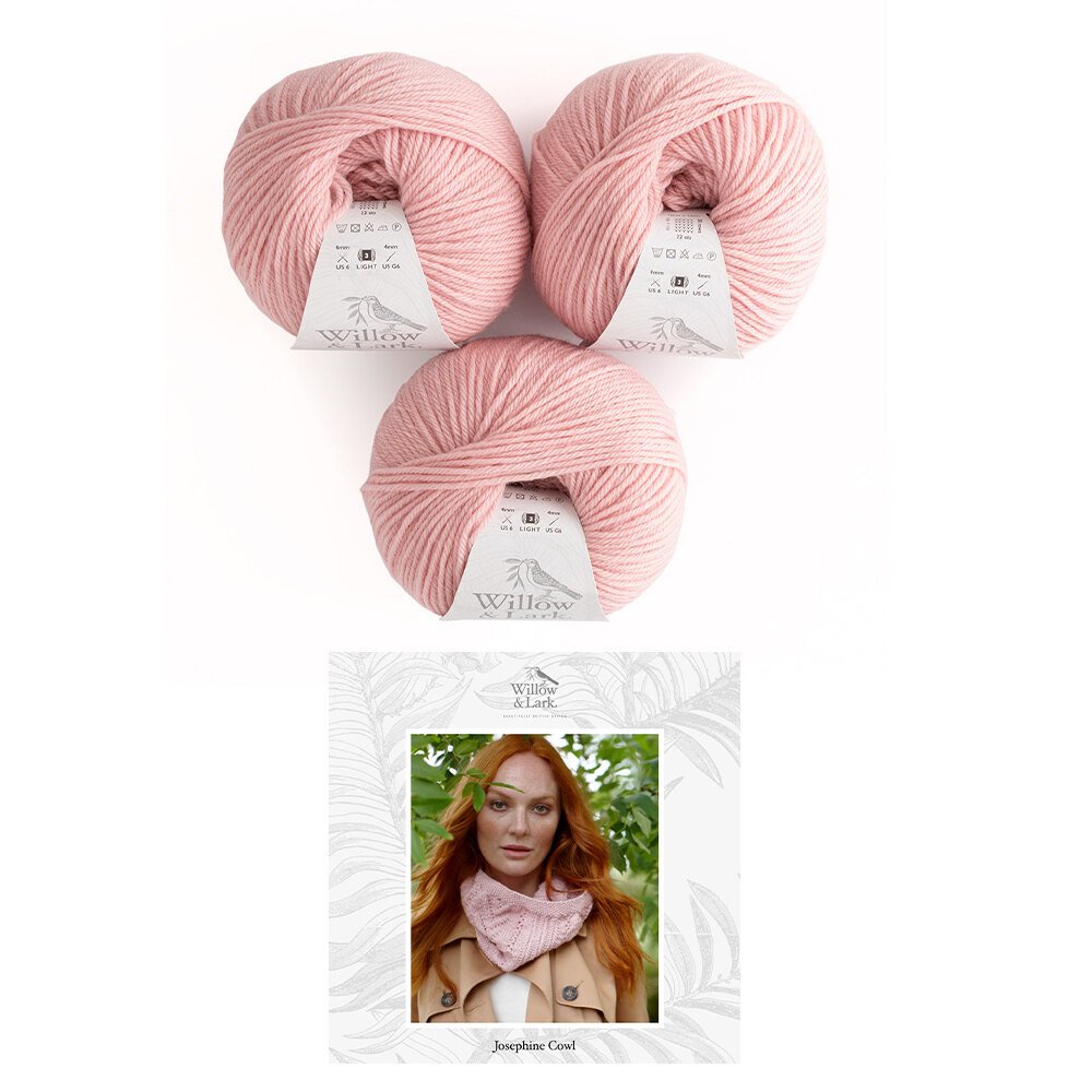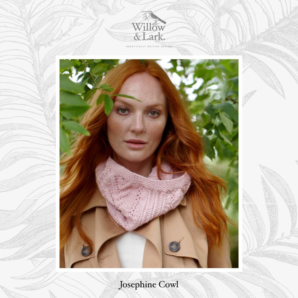 Knitting kit for Willow & Lark Ramble Josephine Cowl. Layering up against the cold is an art, and the Josephine cowl will create an elegant, practical finishing touch to any outfit. By combining slip stitch, cabling and lace stitch, the design creates a whimsical and elegant cowl full of texture and interest.