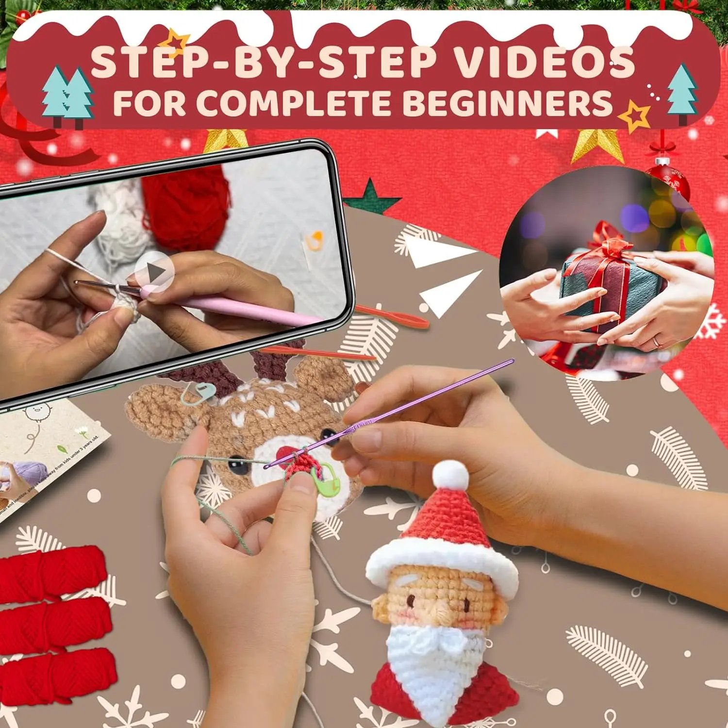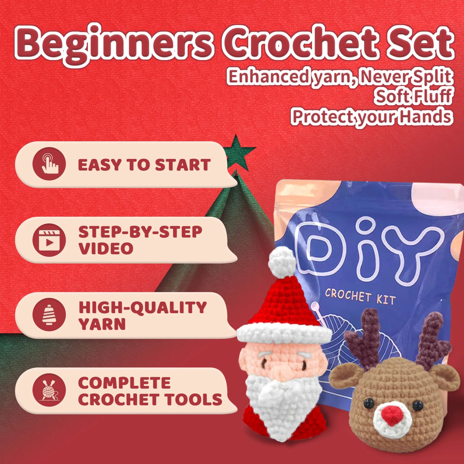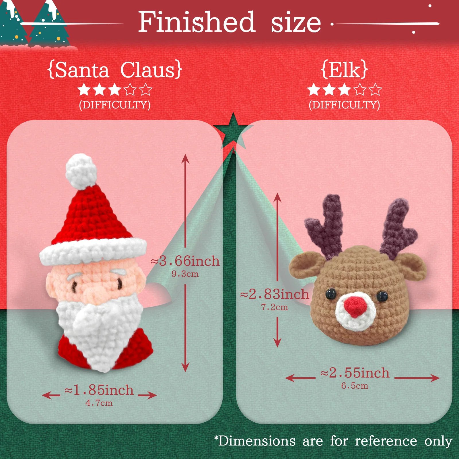 YAMAXIN 2PCS Christmas Deer Santa Claus Crochet kit for Beginners Animal Crochet Starter Kits