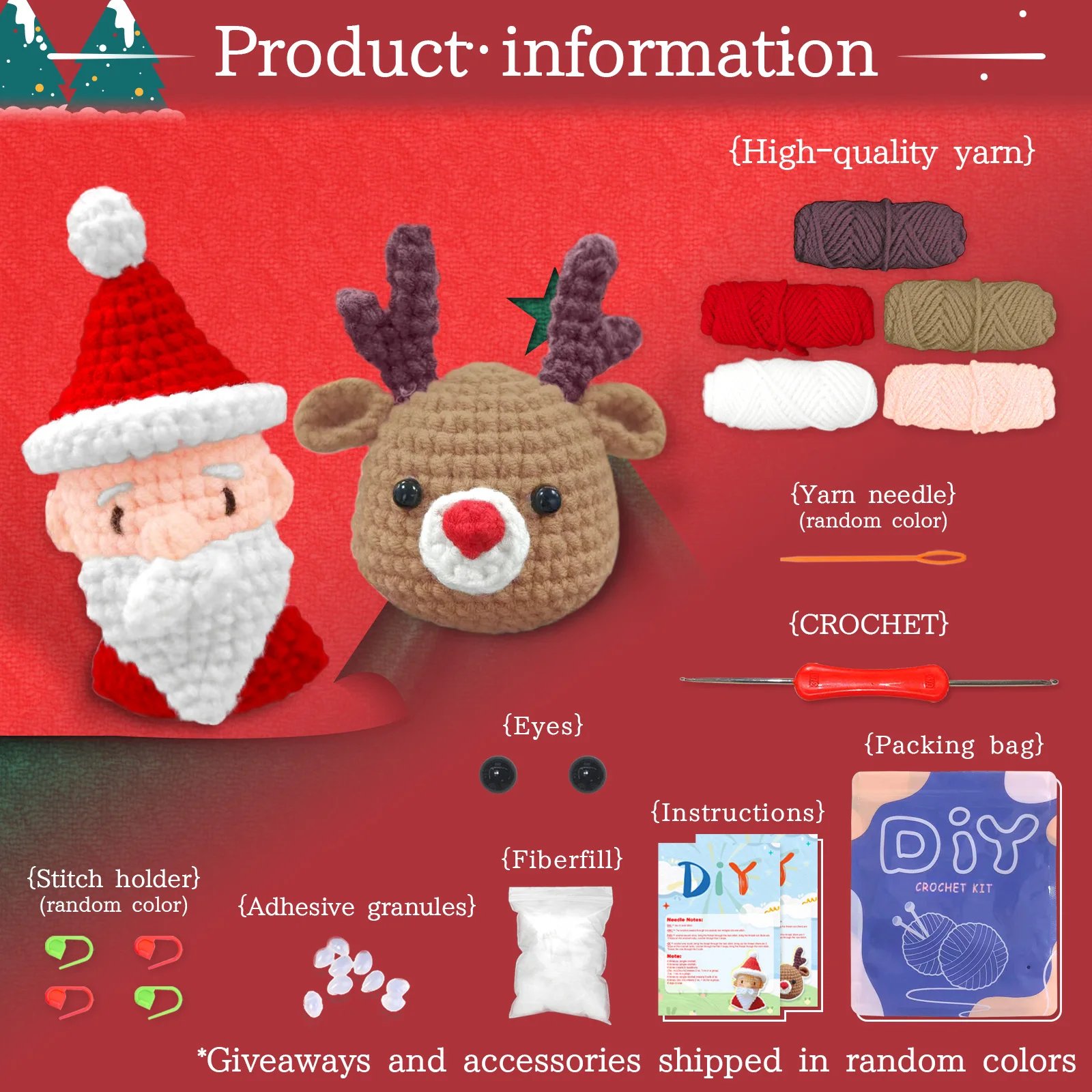 Notice:This is knitting material set(non finished products)YAMAXIN 2PCS Christmas Deer Santa Claus Crochet kit for Beginners Animal Crochet Starter KitsYAMAXIN 2PCS Christmas Deer Santa Claus Crochet kit for Beginners Animal Crochet Starter Kits